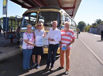 Oberbürgermeister Armin Schenk bedankte sich als Schirmherr für diese gelungene Veranstaltung und übergab nach der ersten Bustour einen kleinen symbolischen Scheck.