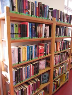 Volle Bücherregale in der Stadtbibliothek im Ortsteil Stadt Wolfen vor dem Umbau