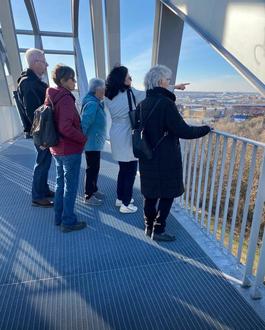 Ein weiterer Höhepunkt ist die Besichtigung der Fassade der Musik-Galerie an der Goitzsche – ein beeindruckendes Jugendstilgebäude, das heute unter Denkmalschutz steht. Hier erfahren die Teilnehmenden auch Wissenswertes zur Firmengeschichte von Albert Richter.