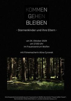Babys, die bereits vor, während oder kurz nach der Geburt sterben, werden liebevoll als „Sternenkinder“ bezeichnet. Der jährliche Internationale Gedenktag für Sternenkinder am 15. Oktober möchte an die verstorbenen Kinder erinnern. Alina Cyranek widmet sich mit ihrem Film „Kommen. Gehen. Bleiben.“ dieser Thematik auf sehr einfühlsame und verständnisvolle Weise und gibt damit dem Tabuthema den erforderlichen Raum und die notwendige Aufmerksamkeit. Im Anschluss daran besteht die Möglichkeit einer Gesprächsrunde.