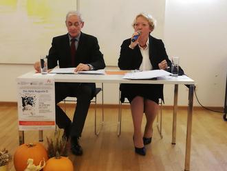 In dieser szenischen Lesung stellen Ulrike Hofmann (r.) und Basil Dorn (l.) die Originalgespräche in den Mittelpunkt des Stückes und ergänzen sie durch die Perspektive des Ehemannes und des Arztes Alois Alzheimer.