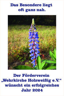 Im Bestellshop von Frau Wojciechowski – Kreuzung Petersrodaer Straße/Straße des Friedens – erhalten Sie exklusiv die neuen handgefertigten „Holzweißiger Wandkalender“ für das Jahr 2024. Mit dem Kauf unterstützen Sie zum einen die Diakonie-Werkstatt in Bitterfeld-Wolfen und zum anderen natürlich auch den Förderverein „Wehrkirche Holzweißig e. V.“ und damit die weitere Sanierung der denkmalgeschützten Wehrkirche in unserem Ort.