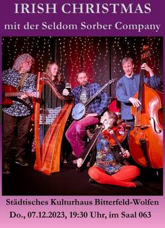 Die Musiker der Seldom Sober Company feiern in diesem Jahr bereits ihr 20. Bandjubiläum. Ihre Konzertreihe „Irish Christmas“ verzaubert schon seit über 11 Jahren Jung und Alt. In ihren Konzerten erzählen sie skurrile Geschichten um das Weihnachtsfest in Irland und machen