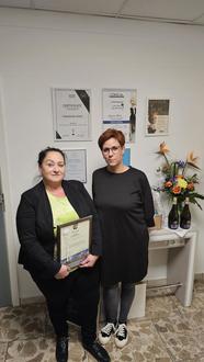 Jeannine Koch und Anja Kuhnert nahmen die Glückwünsche der Stadt Bitterfeld-Wolfen gern entgegen.