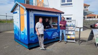 Klaus Suchantke, Ralf Stark und Peter Dürrschmidt geben den Touristen Auskunft am Info-Punkt.