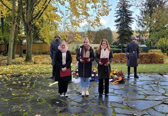 Schülerinnen und Schüler des Heinrich-Heine-Gymnasiums Wolfen und des Europagymnasiums „Walther Rathenau“ Bitterfeld haben an der Kranzniederlegung mitgewirkt und Gedichte rezitiert, um zum würdigen Rahmen dieses Anlasses beizutragen. So hörten die Anwesenden u. a. die Worte des Dichters Hubert Janssen aus dem Gedicht „Zum Volkstrauertag“