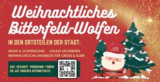 Auf dem „Bitterfelder Weihnachtsmarkt“ vom 15. bis 17. Dezember finden sich im historischen Ambiente der Bitterfelder Innenstadt allerlei Stände von Vereinen und Gewerbetreibenden. Für Unterhaltung sorgt eine vielfältige Bühnenshow u.a. mit dem Bergmannsorchester Bitterfeld, dem Wolfener Ballett-Ensemble und „De Erbschleicher“, die mitvolkstümlicher Rockmusik Partystimmung zur Weihnachtszeit verbreiten. Im Rathaus hat die Kinderbastelstube am Samstag und Sonntag geöffnet. Auch in Bitterfeld können Besucher beim traditionellen Stollenanschnitt ein Stück vom begehrten Gebäck ergattern.