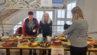 Am 26. November veranstaltete der Förderverein der Kita Fuhnewichtel e. V. einen Kuchenbasar im Wolfener Rathaus, um die Kasse der Kita ein wenig aufzustocken. Die Kita-Leiterin Jana Siegmund (M.) und die Erzieherin Doris Heidrich (l.) verkauften den von den Eltern und dem Förderverein gebackenen Kuchen an die Mitarbeiterinnen und Mitarbeiter. Zupfkuchen, Zwiebelkuchen, Zimtschnecken, Blätterteig: für jeden war etwas dabei. Vom Erlös werden z. B. aufgebrauchte Bastelutensilien wiederbeschafft oder kleine Ausflüge organisiert.