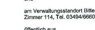 während der Sprechzeiten zur Einsichtnahme am Verwaltungsstandort Bitterfeld-Wolfen, Rathaus OT Wolfen, Rathausplatz 1, 06766 Bitterfeld-Wolfen, Zimmer 129, Tel. 03494 6660-474