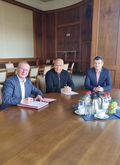 Bitterfeld-Wolfens Oberbürgermeister Armin Schenk (l.) und Christian Dubiel (M.), Geschäftsführer der Stadtwerke Bitterfeld Wolfen GmbH, unterzeichneten den Fernwärme-Gestattungsvertrages für die Stadt Bitterfeld-Wolfen (außer Ortsteil Stadt Bitterfeld) am 2. Dezember im Rathaus Wolfen. Der Bereichsleiter Energiewirtschaft der Stadtwerke, Andreas Schick, war ebenfalls zugegen.