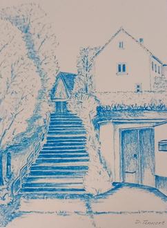Darüber hinaus enthält das Archivale drei Zeichnungen von Dieter Tennert. Zu finden sind diese sowohl auf dem Titelbild „Am Berge“ und auf der Innenseite „Am Berge / Ecke Dorfstr. 2a“ als auch auf der ersten Seite der Broschüre „Der Schäferteich um 1900“. Sie sollen beifügend zum Text eine genauere bildliche Vorstellung an das damalige Leben in der Ortschaft Bobbau ermöglichen.