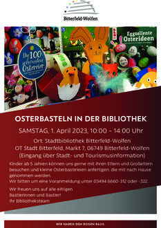 Karfreitag, Ostersonntag und Ostermontag (7., 9. und 10. April) haben wir jeweils in der Zeit von 14:00 bis 17:00 Uhr geöffnet.