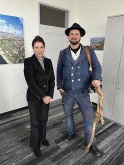 Wandergeselle Marius Beye aus Hameln ist seit über 10 Monaten auf Wanderschaft und besuchte am 22. Februar das Rathaus im Ortsteil Stadt Wolfen. Bürgermeisterin Heike Krauel empfang ihn.