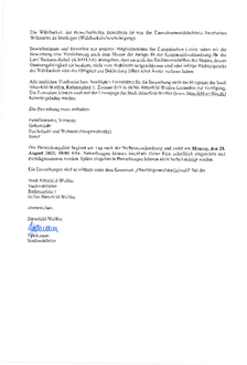 Die Wählbarkeit der Bewerberin/des Bewerbers ist von der Einwohnermeldebehörde ihres/seines Wohnortes zu bestätigen (Wählbarkeitsbescheinigung).