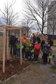 Die Kinder und Erzieher der Heilpädagogischen Tagesgruppe Wolfen weihten gemeinsam mit den Mitgliedern vom Städtepartnerschaftschaftsverein Stadt Wolfen e. V. feierlich den Baum ein.