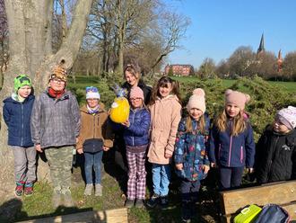 Die Kinder vom Hort Rösa fanden das Ei beim Spaziergang in der Grünen Lunge in Bitterfeld.