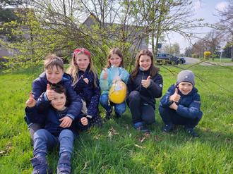 Die Kinder aus Zschepkau haben sich gemeinsam auf die Suche nach dem super Ei gemacht. Nach langer Suche wurden sie belohnt und haben es in der Nähe vom Friedhof auf einer kleinen Wiese gefunden.