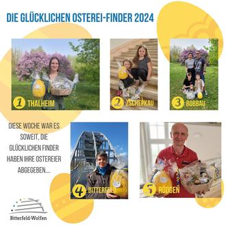 So auch eine Touristin aus Bayern, die das Ei Nr. 4 am „Bitterfelder Bogen“ gefunden hat: „Da ich immer rechts und links des Weges nach Pilzen schaue, ist mir das Ei aufgefallen, welches genauer untersucht wurde." Das Ei konnte die Finderin noch in der Stadt- und Tourismusinformation im Ortsteil Bitterfeld abgeben und hat zudem die Goitzsche und das Bernsteinzimmer im Kreismuseum besucht. Ihre Osterüberraschung wurde per Post zugesendet.