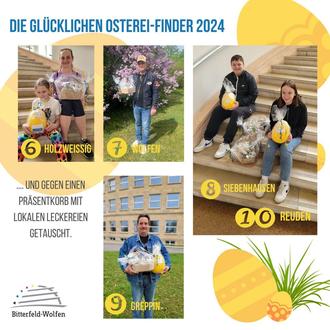 Alle glücklichen Finder der Super-Eier haben sich ihren Präsentkorb abgeholt. Die Super-Eier sind somit allesamt wieder heile bei der Stadt angekommen und freuen sich jetzt schon auf das Osterfest 2025.