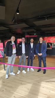 Filialleiter Heiko Gengelbach, Marko Grohnert, David Schoch (Geschäftsführender Gesellschafter WELKONA GmbH) und Steve Bruder (Wirtschaftsförderer Stadt Bitterfeld-Wolfen) eröffnen gemeinsam das neue Ladengeschäft. Foto: Stab Wirtschaftsförderung