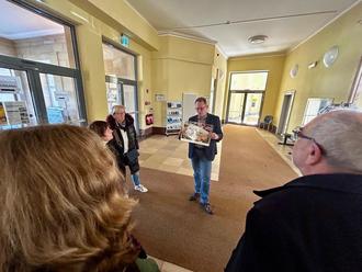 Joachim Teichmann, Amtsleiter für Schule, Kultur und Sport, führte die Besucherinnen und Besucher durch das Wolfener Rathaus.