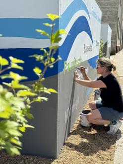 Anfang Mai begannen die Arbeiten an den Stützwänden am Carré Töpferwall/Mühlstraße der NEUBI. Diese erschienen mit ihrem betongrauen Antlitz nicht sonderlich ansehnlich. Das möchte das Team der Claus Brothers nun ändern. An den Wänden soll das „Tor zur Goitzsche“ gestaltet werden. Thematisch soll Bezug auf den Braunkohleabbau genommen werden, kündigte Künstler Ronny Claus im Vorfeld an. Von ihm stammt die Gestaltung. Gezeichnet wird traditionell mit Pinsel und Farbe.