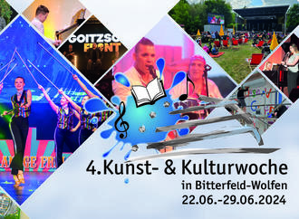 Die 4. Kunst- und Kulturwoche ist eines der Veranstaltungshighlights im kulturellen Kalender der Stadt Bitterfeld-Wolfen. Vom 22. bis 29. Juni 2024 können Besucherinnen und Besucher Kultur in ihren unterschiedlichsten Facetten, vorrangig im Ortsteil Stadt Bitterfeld, genießen und selbst Teil davon werden. Die Vielfalt der lokalen und überregionalen Kulturszene spiegelt sich im Programm mit über 30 Einzelveranstaltungen wieder, darunter Foto- und Kunstausstellungen, Graffiti- und Manga-Workshops, Lesungen, Konzerte, Tanzabende und eine Cosplay Convention.