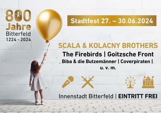 Zum Premium-Event „800 Jahre Bitterfeld“ wird sich die Bitterfelder Innenstadt in ein riesiges Festgelände mit Open-Air-Konzerten auf vier Bühnen, mit abwechslungsreichen bunten Mitmach-Programmen, einer Gastronomie-Meile und vielen Aktionen verwandeln. Auf der Hauptbühne und der Regionalbühne in der Grünen Lunge, auf der Marktbühne und der Sommer Lounge mit Hofbühne vor der Stadt- und Tourismusinformation hat das Festprogramm für jeden etwas zu bieten! Die Stadt Bitterfeld-Wolfen möchte mit Ihnen, Ihrer Familie und Ihren Freunden dieses Fest feiern! Sie finden gebündelte Informationen rund um das Großereignis des Jahres mit großer Programmübersicht in diesem Amtsblatt.