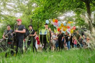 Unter musikalischer Begleitung der Sax´n Anhalt VIP-Band marschierten viele Kinder zum neuen Spielgelände, um dieses feierlich zu eröffnen.