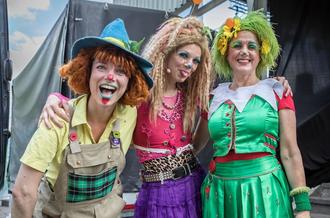 Kindertagsstimmung am Sonntag: Die Traumzauberbaum-Charaktere Waldwuffel, Agga Knack und Moosmutzel vom Traumzauberbaum-Ensemble begeisterten die Kleinsten Bitterfeld-Wolfener mit ihrem „Rosinenprogramm“.