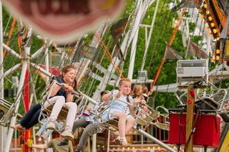 Mit einem Lachen im Gesicht genossen die Kinder das Kettenkarussell – ein Highlight im bunten Schaustellerbereich.