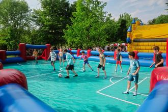 Im LokalSpot konnten sich städtische Vereine präsentieren und Groß und Klein zum Mitmachen animieren. Die aufblasbare Soccer-Anlage des 1. FC Bitterfeld-Wolfen sorgte bei jungen Fußballfans für Begeisterung.