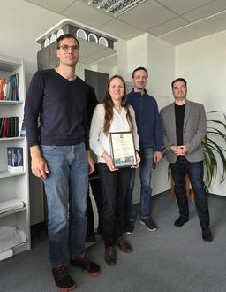Marc Wendt, Geschäftsführerin Dr.-Ing. Elke Deux, Dmitrij Motovilov, Wirtschaftsförderer der Bitterfeld-Wolfen Steve Bruder (v.l.n.r.) Foto: Stab Wirtschaftsförderung