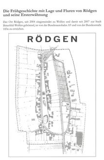Zu Beginn der Broschüre wird auf die frühgeschichtlichen Wurzeln Rödgens eingegangen. Zunächst war die Region von den Sorben bewohnt, bevor sich später christliche Siedler dort niederließen. Diese übernahmen häufig die sorbischen Ortsnamen – so auch im Fall von Rödgen, dessen Name auf die Rodung des Gebietes durch die ersten Siedler zurückzuführen ist.