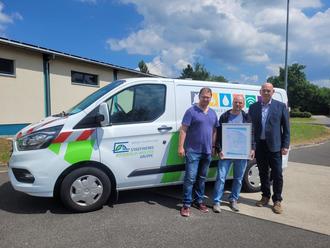 Projektmitglied David Klix, Projektleiter Torsten Meier u. Geschäftsführer Netzgesellschaft Mirko Byton (v. l. n. r.) mit dem frisch erworbenen ISMS-Zertifikat.