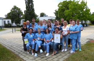 Die Auszeichnung wurde vom Institute of Research and Data Aggregation verliehen. Im Goitzsche Klinikum wurde die Auszeichnung mit einer kleinen Feierstunde gewürdigt, zu der alle 45 Praxisanleiterinnen und -anleiter eingeladen waren. „Diese Anerkennung ist ganz klar euer Verdienst“, betonte Steffi Hacker, Zentrale Praxisanleiterin des Klinikums, in ihrer Ansprache an die versammelten Pflegekräfte. „Durch euren Einsatz können wir unsere Auszubildenden engmaschig und – wie die Auszeichnung bestätigt – auch qualitativ hochwertig betreuen.“