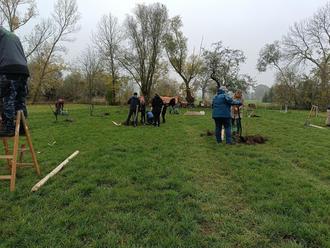 An einem Samstag, Anfang November, versammelten sich bei neblig-kühlem Wetter, neben vier Ehrenamtlichen des Projekts „LEIPZIG pflanzt“ und einer Vertreterin des NABU Leipzig, weitere 11 freiwillige Helfer, um auf einer Wiese am Ortsrand von Boyda, 6 Hochstamm-Obstbäume und 122 einheimische Sträucher für eine Vogelschutzhecke zu bepflanzen.