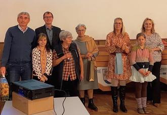 Der Badrina-Scholitzer Heimatverein e. V. bedankt sich bei den Referenten (Siglinde Wohlschläger aus Löbnitz zu mittelalterlichen Ereignissen, Jürgen Geisler Museumsleiter im Schloss Delitzsch zum Vortrag über die Herzogin Christiane von Sachsen-Merseburg, Susan Köditz als Leserin der Sage vom Reibitzer Liebespaar und der Schmiede in Boderin, Brigitte Brandt und Gemeindewehrleiter Uwe Försterling.