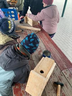 War das ein Hämmern in der letzten Januarwoche in der Gellert-Grundschule. Das milde Wetter wurde genutzt, um im Freien vorgefertigte Nistkästen zusammen zu bauen. Lehrerin Frau Rößler und Herr Gempe zeigten den „fleißigen Maulwürfen“ wie man mit ein paar Nägeln die Bruthilfen fertigstellen kann. Mit Feuereifer wurden die notwendigen Arbeiten erledigt. Immer wieder wurde erklärt, warum wir den Singvögeln z.B. Meisen, Rotkehlchen, Gartenrotschwanz ... solche tollen „Wohnungen“ zur Verfügung stellen. Das Deutsche Kinderhilfswerk finanziert sechs neue Hochbeete für unseren Schulgarten. Darin sollen Salat, Kohlrabi und Radies gedeihen. Die Singvögel werden uns dann helfen, Schädlinge zu vernichten und ihre Jungen damit zu füttern. Am Ende hatte jeder „Maulwurf“ einen Nistkasten komplett gefertigt. Freude und Stolz waren groß über das Erreichte und der Start in die Gartensaison eingeläutet.