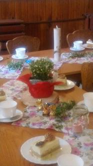 Der Spielenachmittag begann mit gemeinsamen Kaffeetrinken und einer leckeren Kremschnitte von der Landbäckerei Treppte.