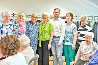 Michael Kefalas (3. v. l.) aus Leipzig gastierte am 8. Mai 2023 mit seinem Mode Nr. 1-Express im Rackwitzer Märchenweg. Laien-Models und Seniorinnen aus der dort immer montags stattfindenden Kaffeerunde gaben Ausblick auf seine aktuelle Sommerkollektion. Mit spaßiger Art und viel Humor moderierte Kefalas den kurzweiligen Catwalk und animierte natürlich auch zum Kauf der schicken Mode zum Wohlfühlen. „Dieses Angebot wurde rege angenommen“, freute sich Rotkreuzhelferin Dorothea Matthey, die als Organisatorin auch Bürgermeister Steffen Schwalbe (4. v. r.) im Seniorentreff begrüßen konnte. „Ein rundum gelungener Nachmittag, der sich zur Herbstkollektion bestimmt wiederholen lässt“, so ihre Planungen.