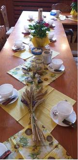 An einer der Erntezeit entsprechend dekorierten Kaffeetafel begann unser Rentnertreff mit Kaffee und einer Erdbeerfruchtschnitte.