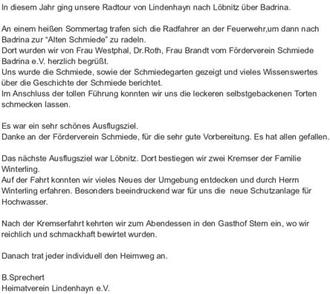 Radtour 24.08.2024 des Heimatvereins Lindenhayn e. V.