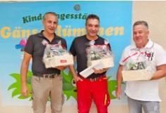 Gemeinsam mit einem kleinen Kinderprogramm der „Gänseblümchen“-Einrichtung dankten die beiden DRK Vorstände Antje Streubel und Jan Schweiger den Vertretern der verschiedenen Baubetriebe, der Gemeinde Schönwölkau, den Erzieherinnen und Erziehern sowie Leiterin Cornelia Falk für ihr großes Engagement während der notwendigen Baueinschränkungen wie auch den Kindern und ihren Eltern selbst.