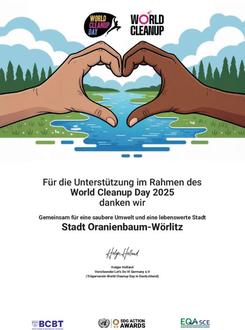Im Rahmen des diesjährigen World Cleanup Day engagierten sich am 20. September 2025 zahlreiche Bürgerinnen und Bürger in den Ortsteilen Oranienbaum, Wörlitz und Vockerode für eine saubere Umwelt. Insgesamt nahmen rund 140 Personen an der Aktion teil, darunter auch Gäste von außerhalb.