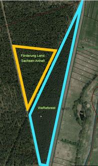 Die Kosten der anderen drei Flächen (gelb markiert, angrenzend an obige Fläche und in der Nähe des Altenpflegeheimes) in Höhe von ca. 70.000 € werden zu einem großen Teil (85%) durch Fördermittel des Landes Sachsen-Anhalt finanziert. Zentraler Punkt unserer Fortwirtschaftsplanung ist die Anpassung des Bestandes an die sich wandelnden klimatischen Bedingungen - um den Wald nicht nur kurzfristig zu erhalten, sondern ihn nachhaltig und klimafest für die kommenden Generationen zu gestalten.