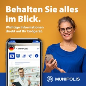Registrieren Sie sich bei MUNIPOLIS und erhalten Sie Benachrichtigungen über Neuigkeiten aus der Gemeinde/ Stadt sowie Einladungen zu Veranstaltungen und vieles mehr. Bleiben Sie immer informiert und nutzen Sie die Vorteile der Munipolis App.