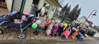 Mit unserem bunt geschmückten Bollerwagen und lustigen „Krawallmachern“ waren wir kaum zu übersehen, geschweige denn zu überhören! Das Sprüchlein konnten wir gar nicht oft genug sagen. Zum Dank gab es ein dreifaches SONNENBLUME HELAU!!!, auf Wunsch auch mal ein Ständchen. Die Wege waren weit, der Wagen füllte sich… da öffneten tatsächlich Clown und Käfer ihre Tür. Was für eine Überraschung!! Das wird uns in Erinnerung bleiben! Der Geldbeutel klimperte und raschelte.