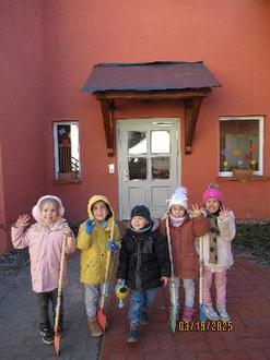 seit wenigen Wochen schmückt eine neue Tür den Eingang unserer Kita. Während die Erzieher am 7. März 2025 an einer Fortbildung mit Prof. Dr. Malte Mienert teilnahmen, erhielt unser Eingang ein Dach, welches noch durch wenige Handgriffe fertig gestellt wird.