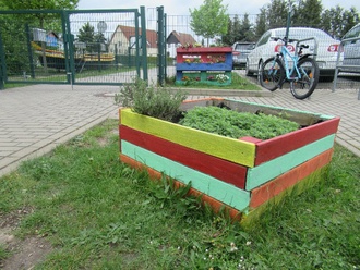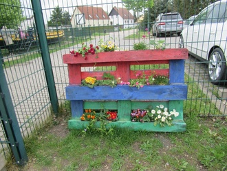 Da der Frühling sich bereits Ende März mit fast sommerlichen Temperaturen zeigte, geht es natürlich mit unserer Ackerarbeit wieder los. Die Vorbereitungen für den Anbau laufen, ebenso haben wir Paletten bemalt und bepflanzt, damit es auf unserem Gelände erste bunte Farbkleckse gibt, und der Acker ist bereit:
